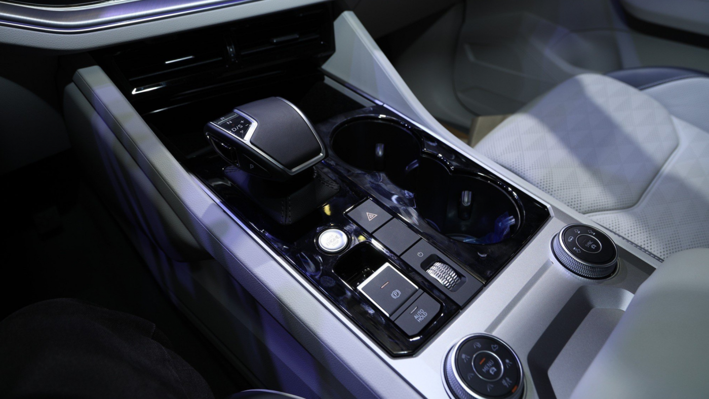 Cần số Volkswagen Touareg 2026 có kích thước gọn gàng, thiết kế vừa vặn trong nắm tay của người dùng. Tất nhiên đây là cần số điện tử với thao tác sử dụng rất cao cấp. Vị trí cần số đặt thấp, gần sát với bề mặt bệ điều khiển giữa hàng ghế trước, tạo cho khu vực điều khiển sự tinh giản, hiện đại.